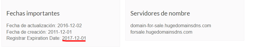 Su funcionamiento es bastante intuitivo: Basta con poner el nombre del Dominio y aparece la información de quién lo ha registrado, así como la fecha de caducidad del dominio: