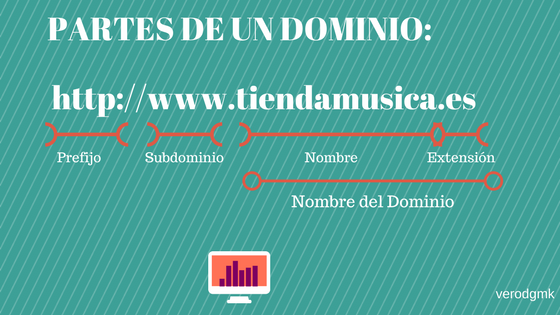 El concepto de Dominio es, en resumidas cuentas, el nombre de mi marca en Internet, la dirección que los usuarios tienen que teclear para ver nuestra página web. Podemos verlo con más detalle en la siguiente imagen: