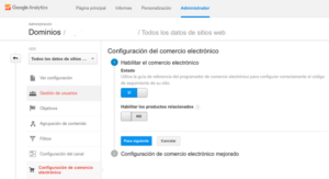 Magento ya tiene por defecto una opcion para introducir nuestra ID de seguimiento, pero primero tenemos que habilitar una opción en nuestro panel de Google Analytics.