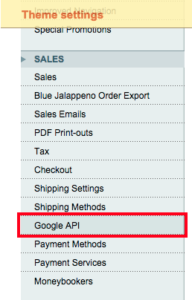 - A continuación en el apartado de «Sales» nos vamos a «Google API»