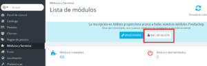 Nos vamos a nuestro backoffice de Prestashop y a la pestaña de módulos, si no tenemos una cuenta en addons (el mercado de Prestashop) nos registramos. Una vez dentro solo tenemos que buscar nuestro módulo y descargarlo.
